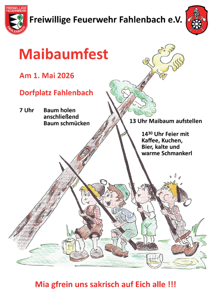 | Maibaum holen | Freitag, 01. Mai | 07:00 Uhr | FFW-Haus |