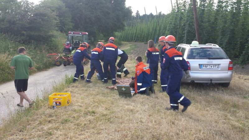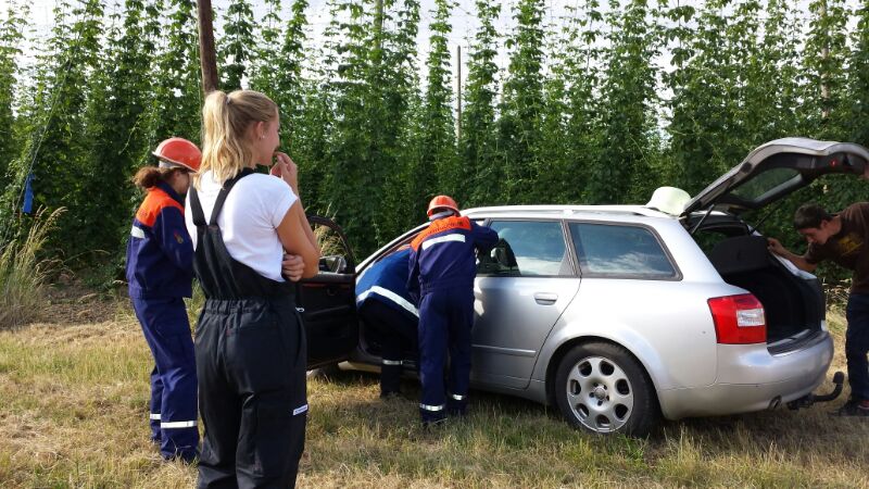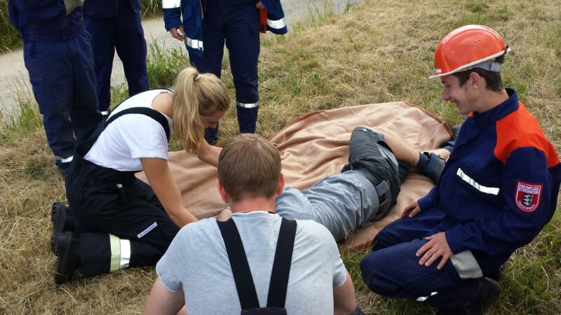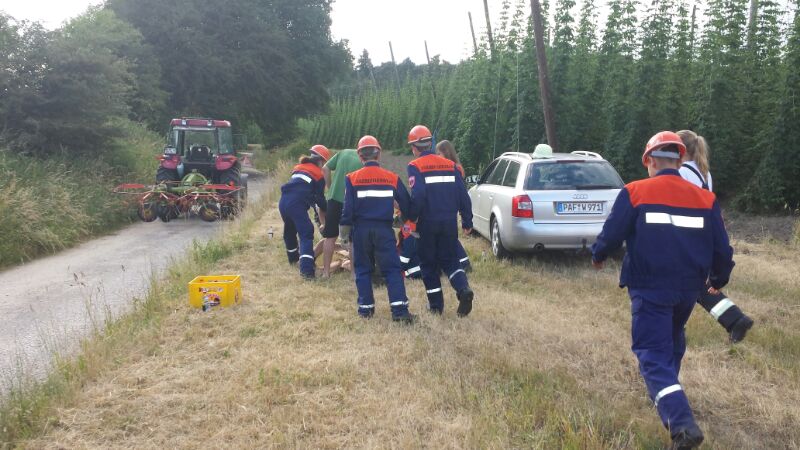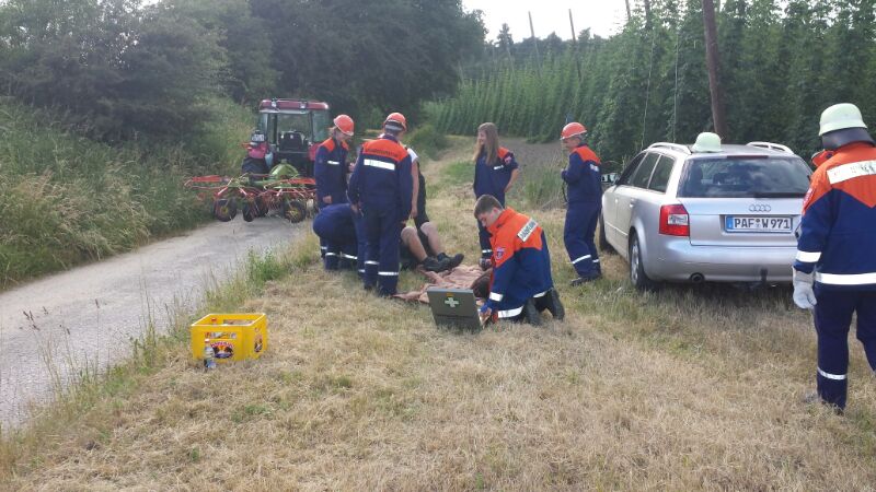 Die Übung umfasste die Rettung von drei Personen aus einer in Brand geratenen Scheune mit mehreren Atemschutztrupps, sowie die Brandbekämpfung und Wasserförderung über lange Strecken.