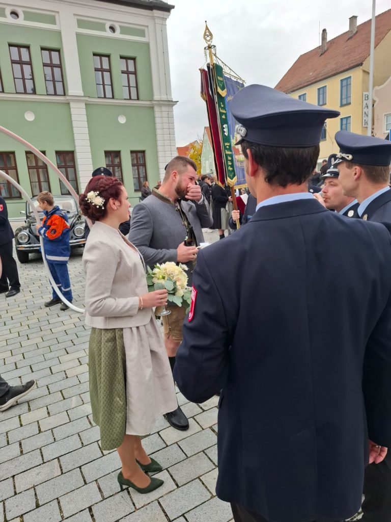Zu Ihrer Vermählung waren wir mit der Feuerwehr Wolnzach vor Ort und standen mit unserer Standartenabordnung Spalier.