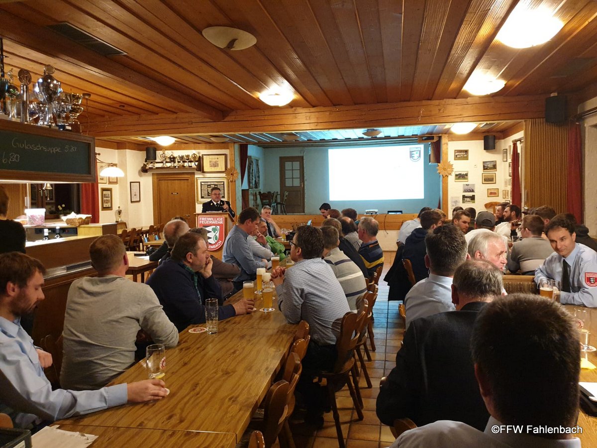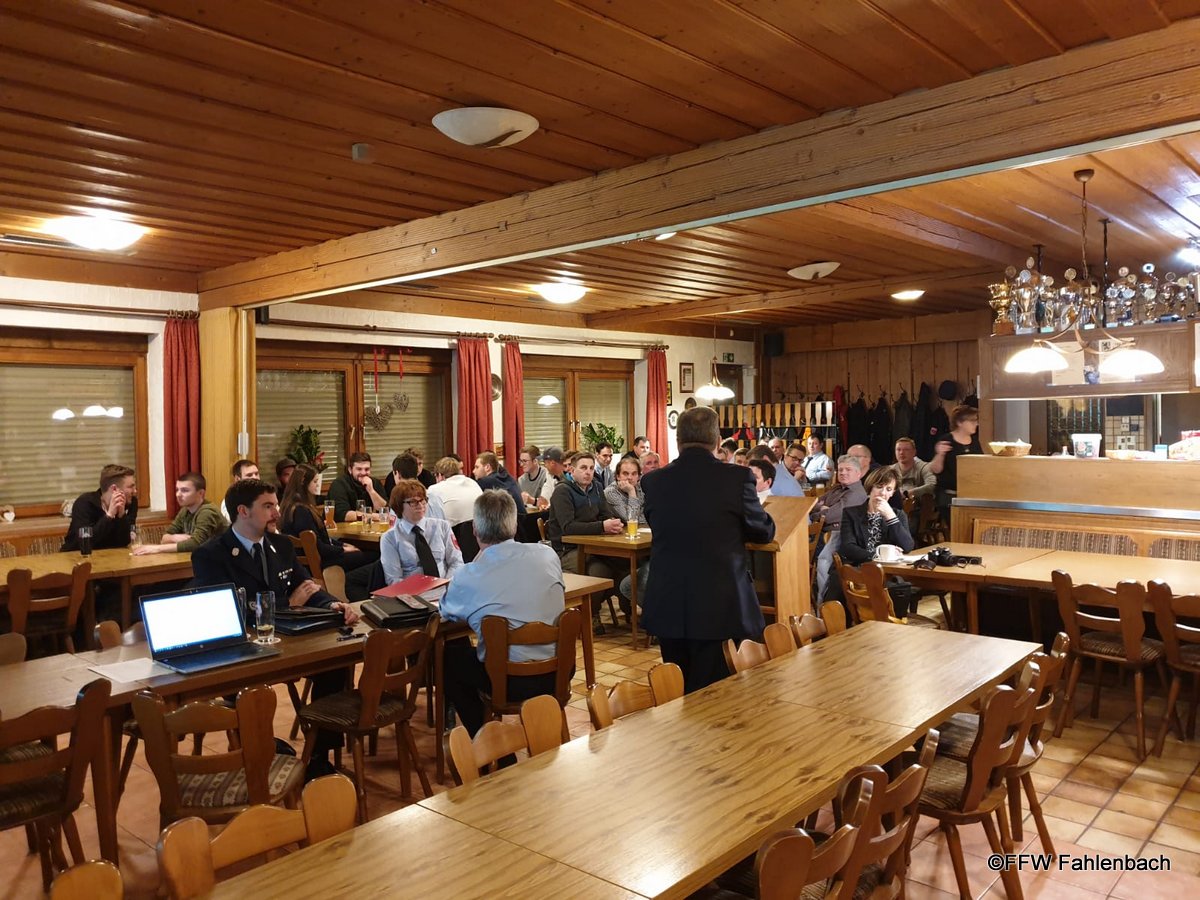 Zur Jahreshauptversammlung am vergangenen Samstag fanden sich Zahlreiche Gäste und Mitglieder der Feuerwehr Fahlenbach im Vereinsheim des SV Fahlenbach ein.