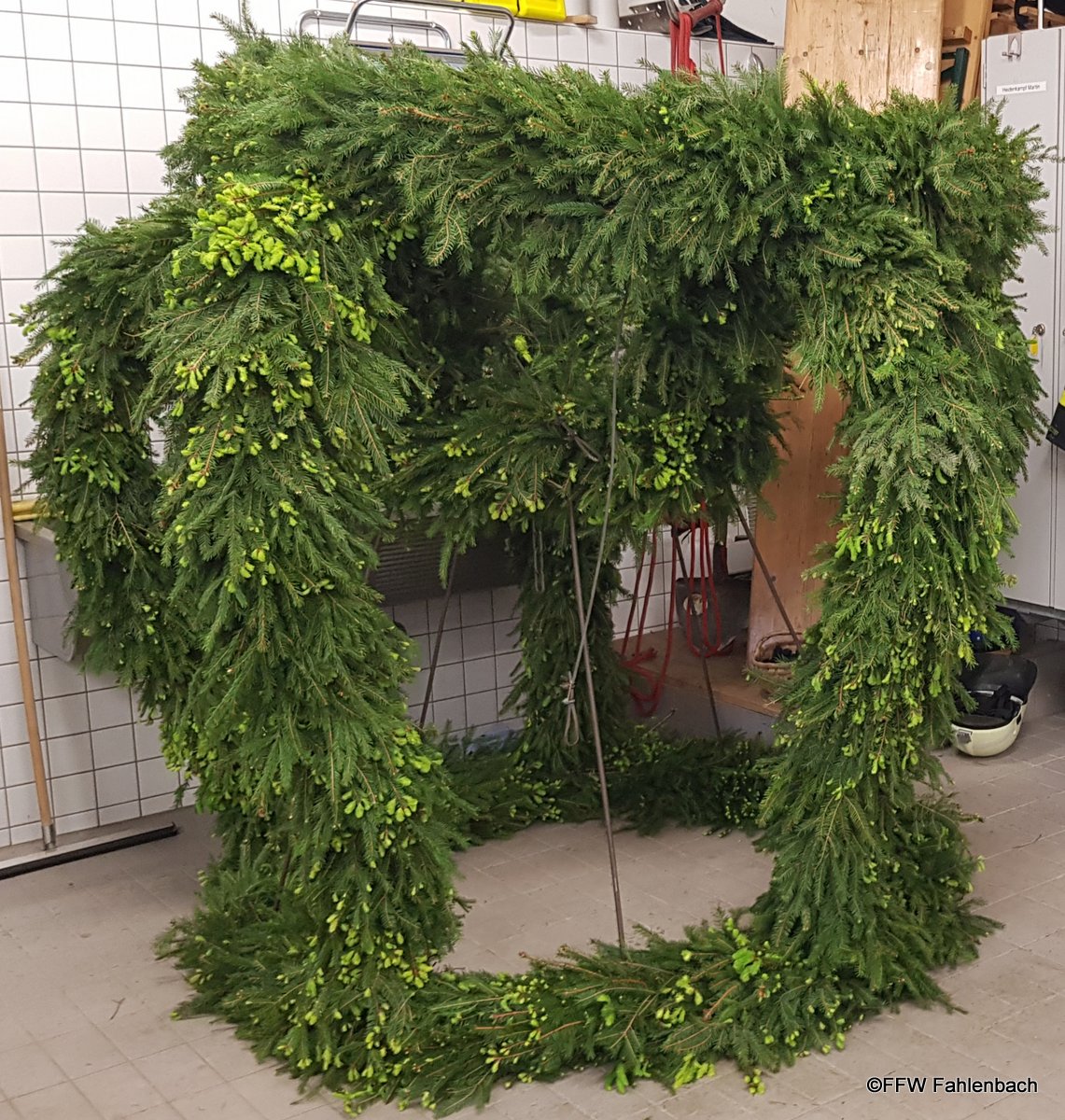 Sehr wichtig und viel Arbeit sind auch Kränze und die Girlanden die im Vorfeld meistens von den Damen gebunden werden.
